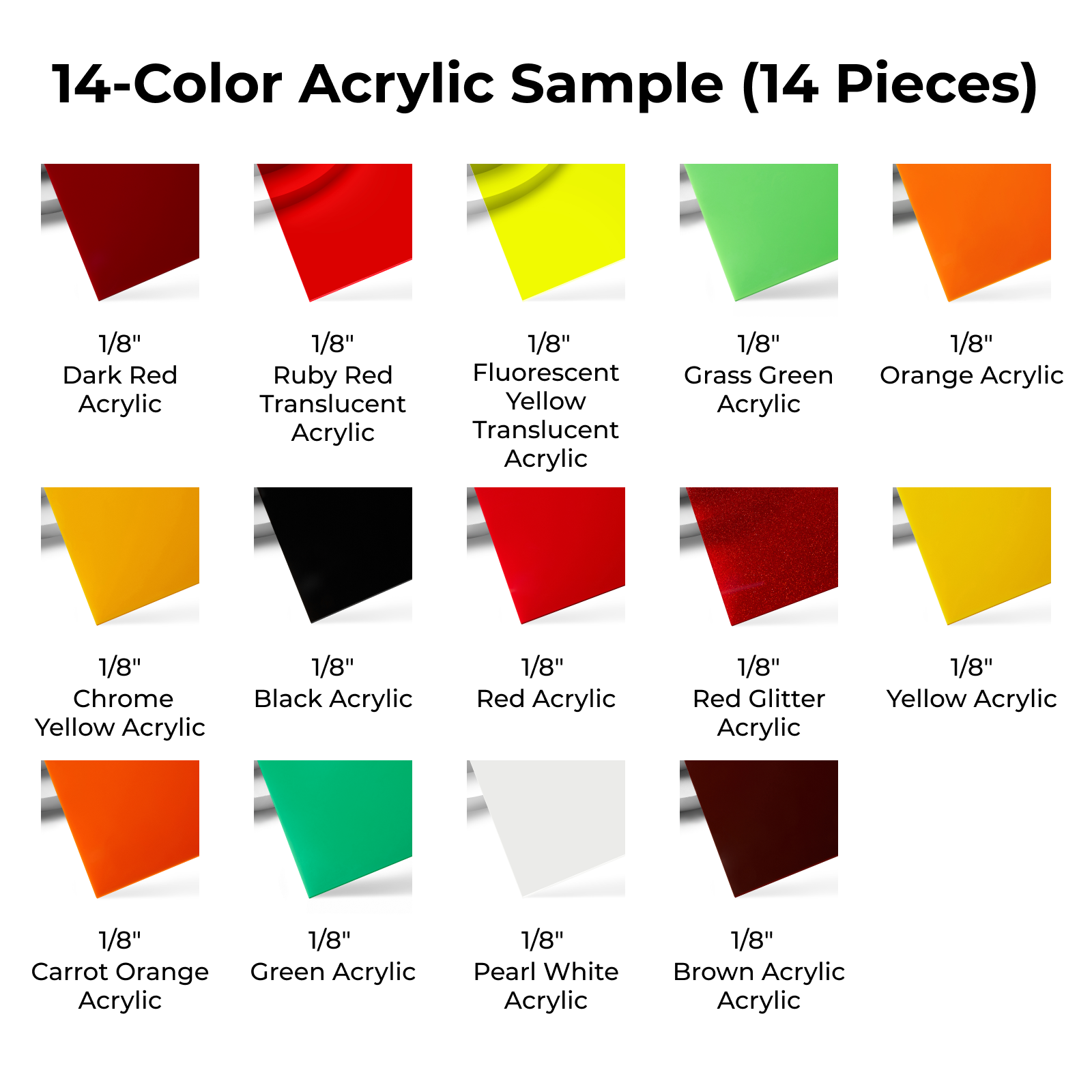 - The general acrylic sample set boasts a flawless surface with neat cut edges without burrs, ensuring a clean and glossy look. The general acrylic sample has saturated colors and excellent craftsmanship. The engraving and cutting results are both highly aesthetic.