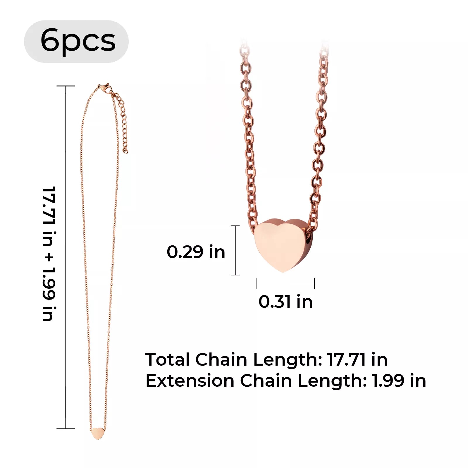 - What's Included6 x Rose Gold Stainless Steel Heart Necklace