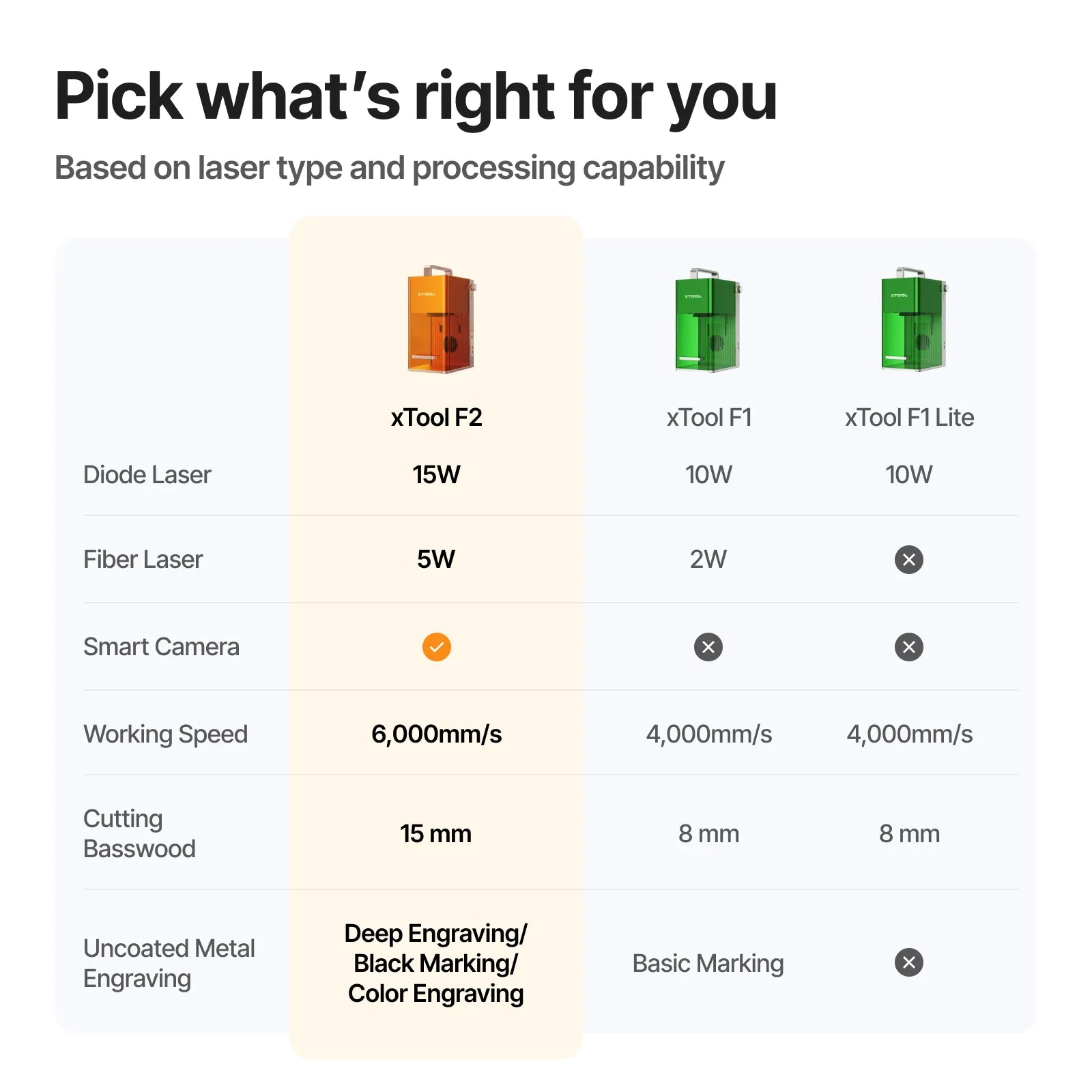 - More power: 15W Diode & 5W IR makes F2 a true all-rounder—confident cutting and engraving on various materials.