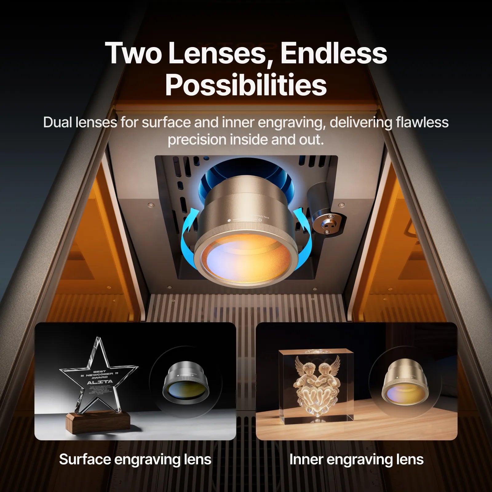 Inner engraving and surface engraving require different lenses. This pre-calibrated pack lets you switch modes easily and accurately.