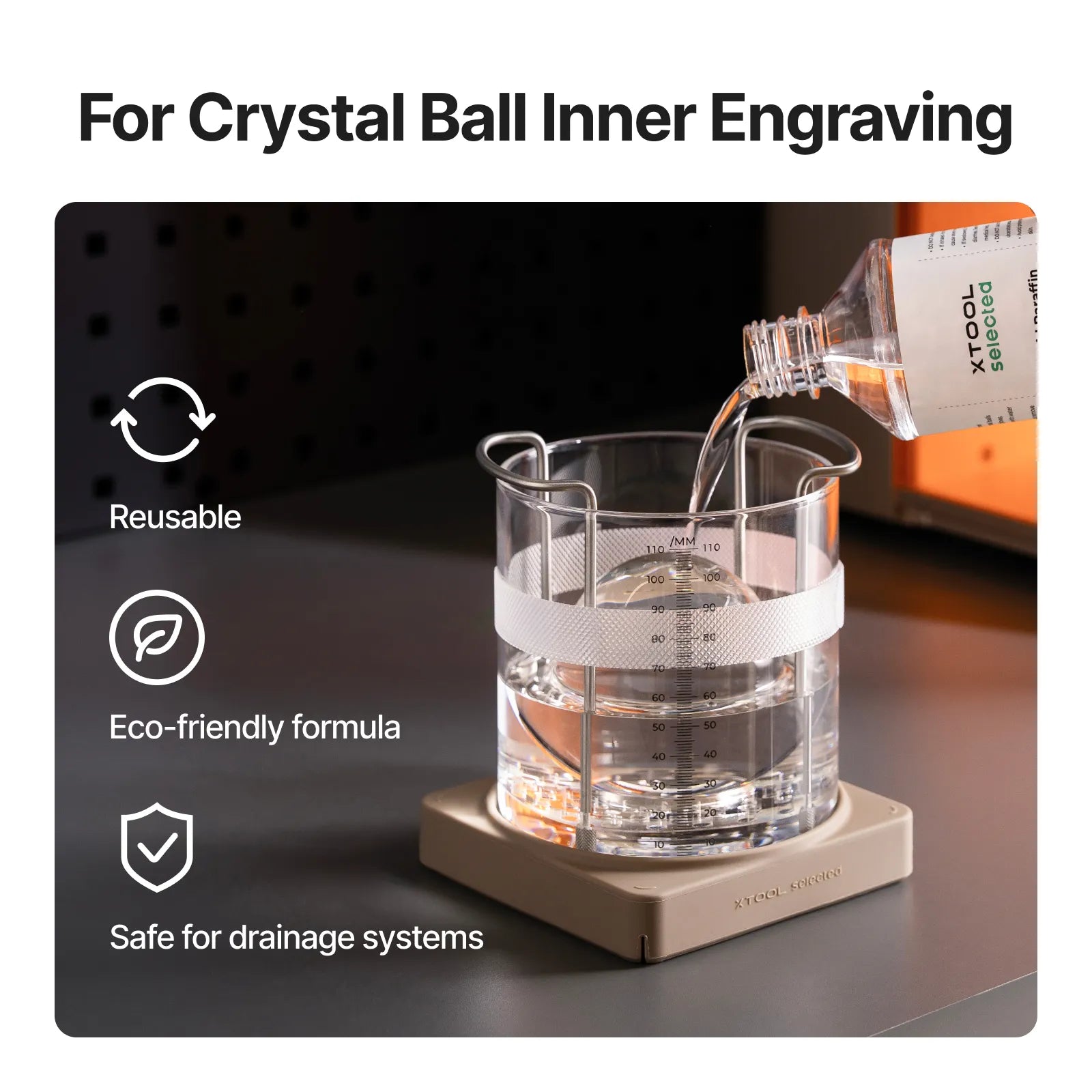 - The Crystal Ball Inner Engraving Fixture is reusable. The inner engraving oil can be reused multiple times. If the oil becomes cloudy after repeated use, replace it to maintain optimal engraving results.