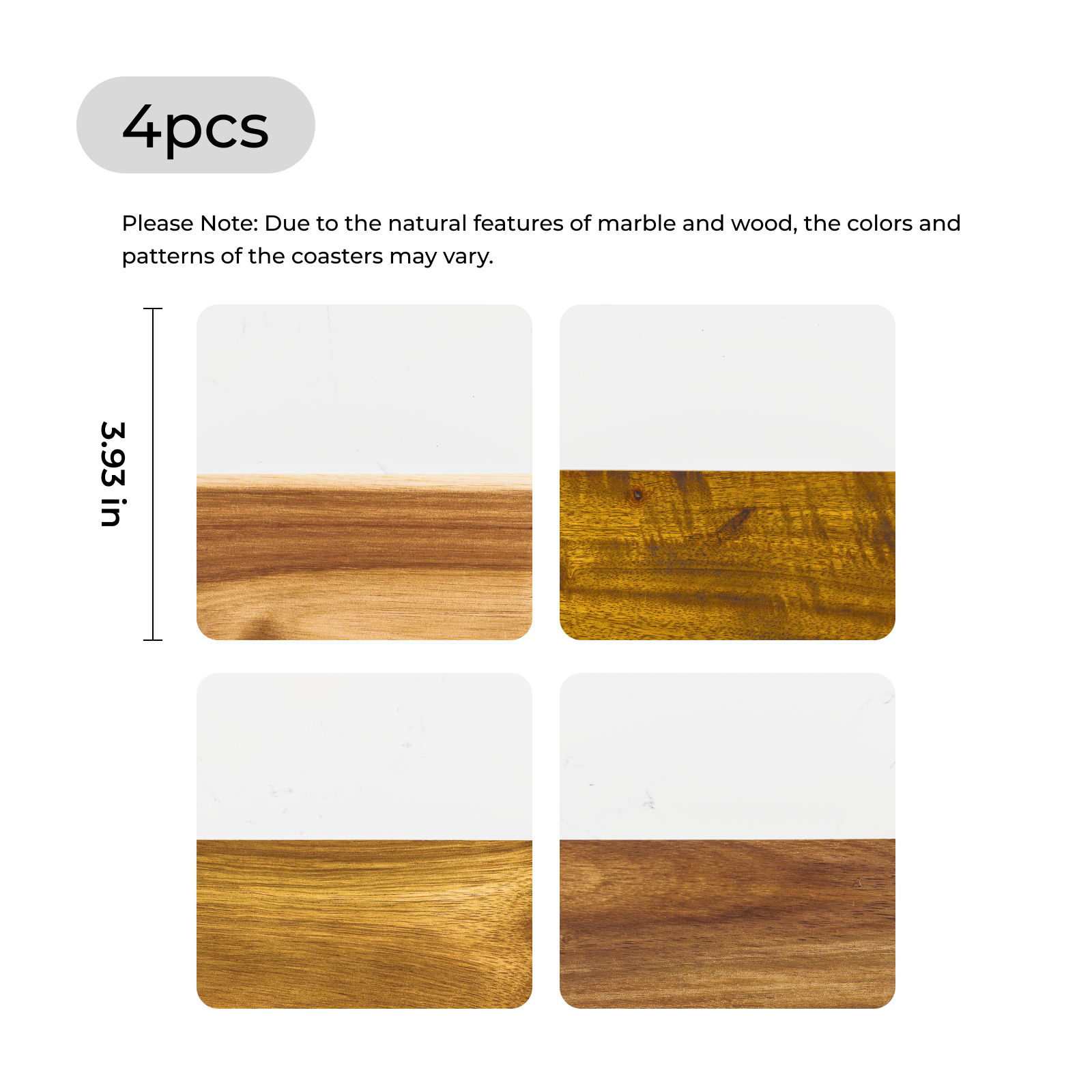 - Note: As wood and marble are natural materials, slight variations in grain and color may occur, adding to the unique charm of each coaster.