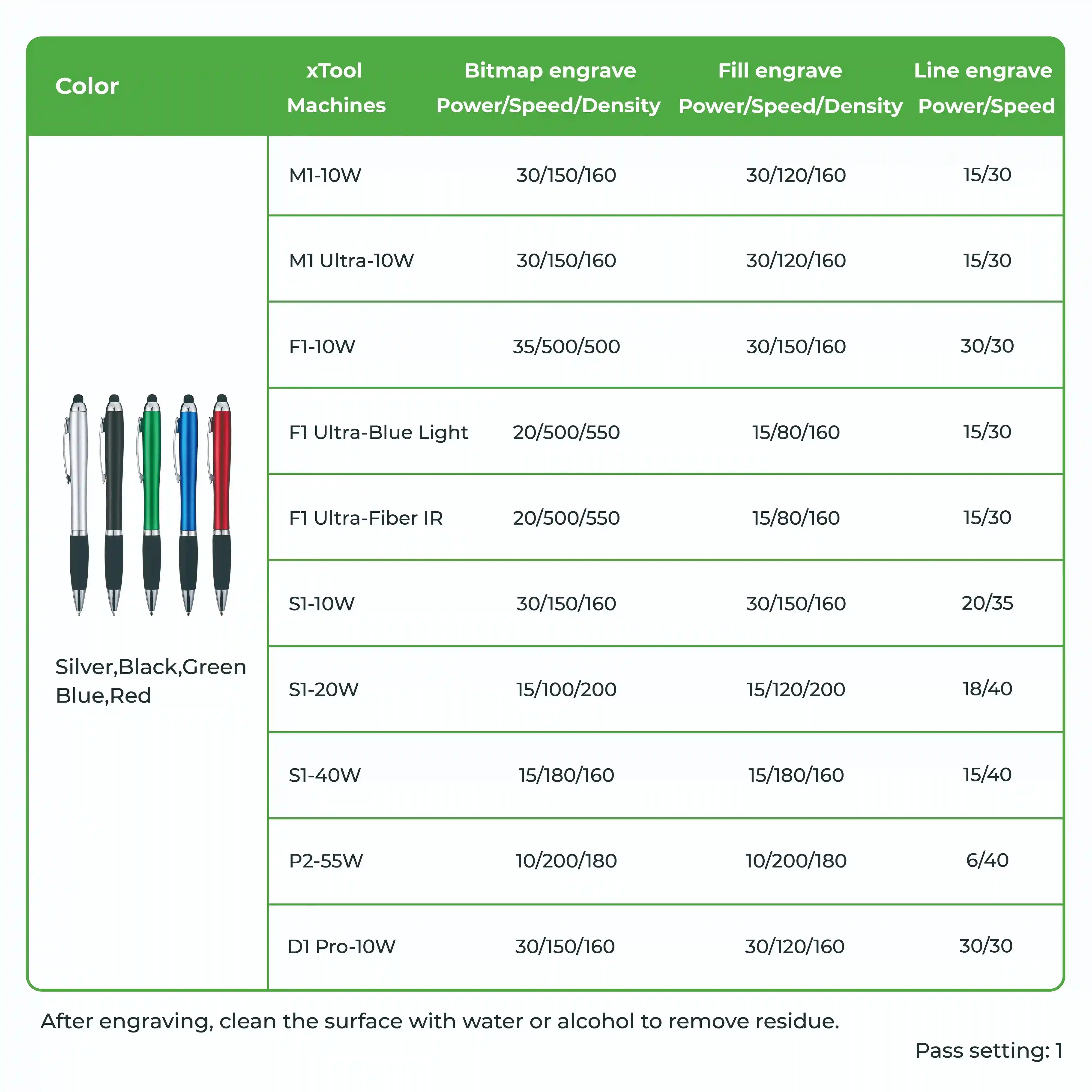 - The stylus ballpoint pen features a multicolored LED light that is perfectly adapted to the xTool machine for laser engraving. Simply carve patterns or text into the body of the pen to get a cool pattern that glows. A button on the end of the pen controls the light. For optimal performance and longevity, we recommend turning off the light when the pen is not in use.